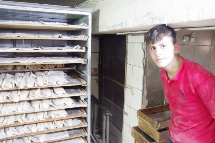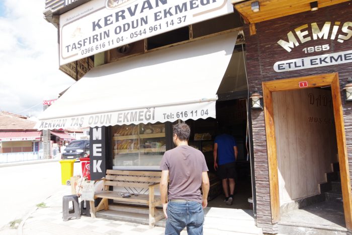 トルコの一般的なパンであるシミット、エキメッキ(日本でいう食パンのような位置付け)を焼いていました。薪窯のすぐ上に、仕込むための部屋があります。菌たちのため、暖かい環境でパン作りができそうです。とても理にかなった作りです。冬は良さそうですが、夏は大変そうです。