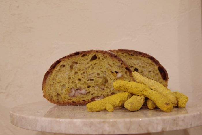 挽きたてのターメリックに、オーガニックのクルミを合わせました。生地のベースはブロンになります。